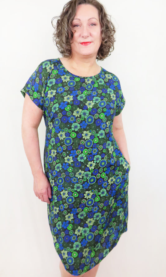 BEATRICE Vintage Floral Shift in BLUE