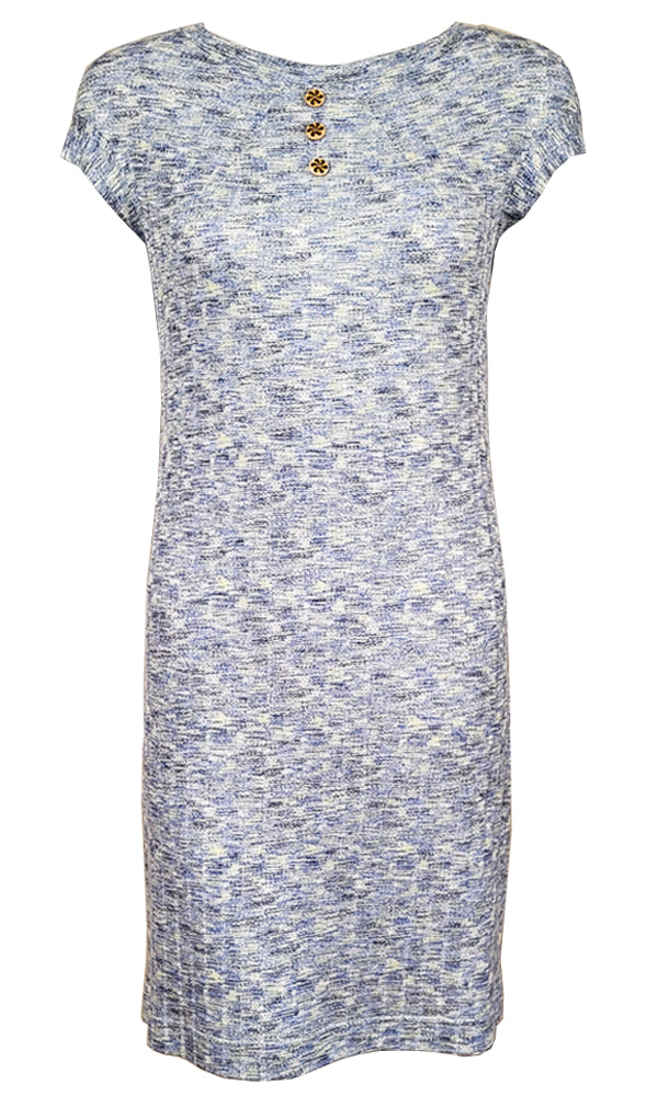 - Details: Darted jewel neckline with button detail / fitted cap sleeves / side seam pockets