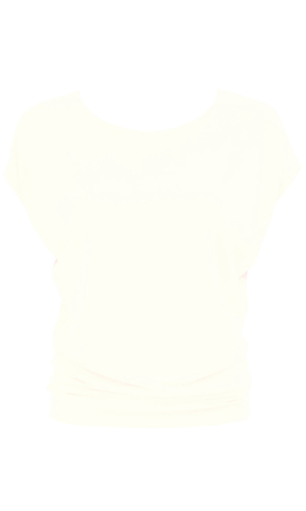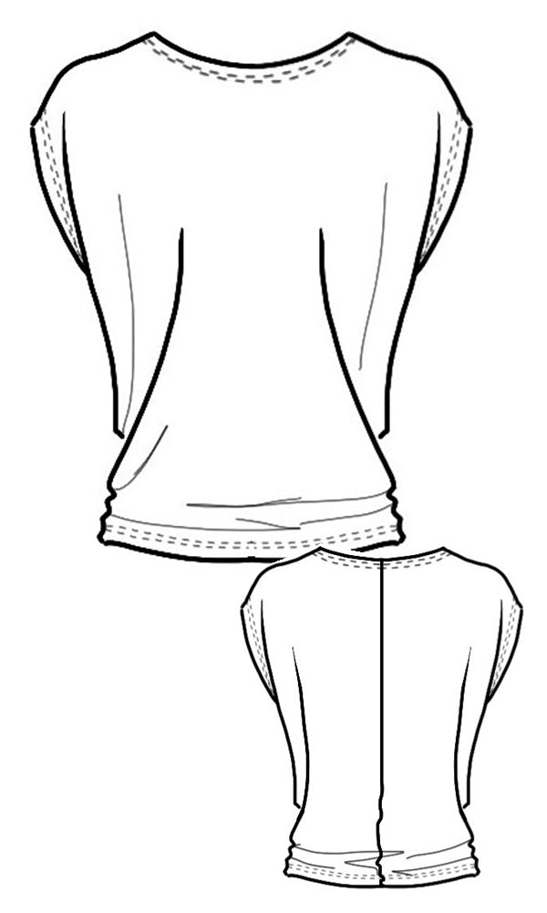 - Details: Wide scoop neckline, blousy through bust and waist, fitted at high hip