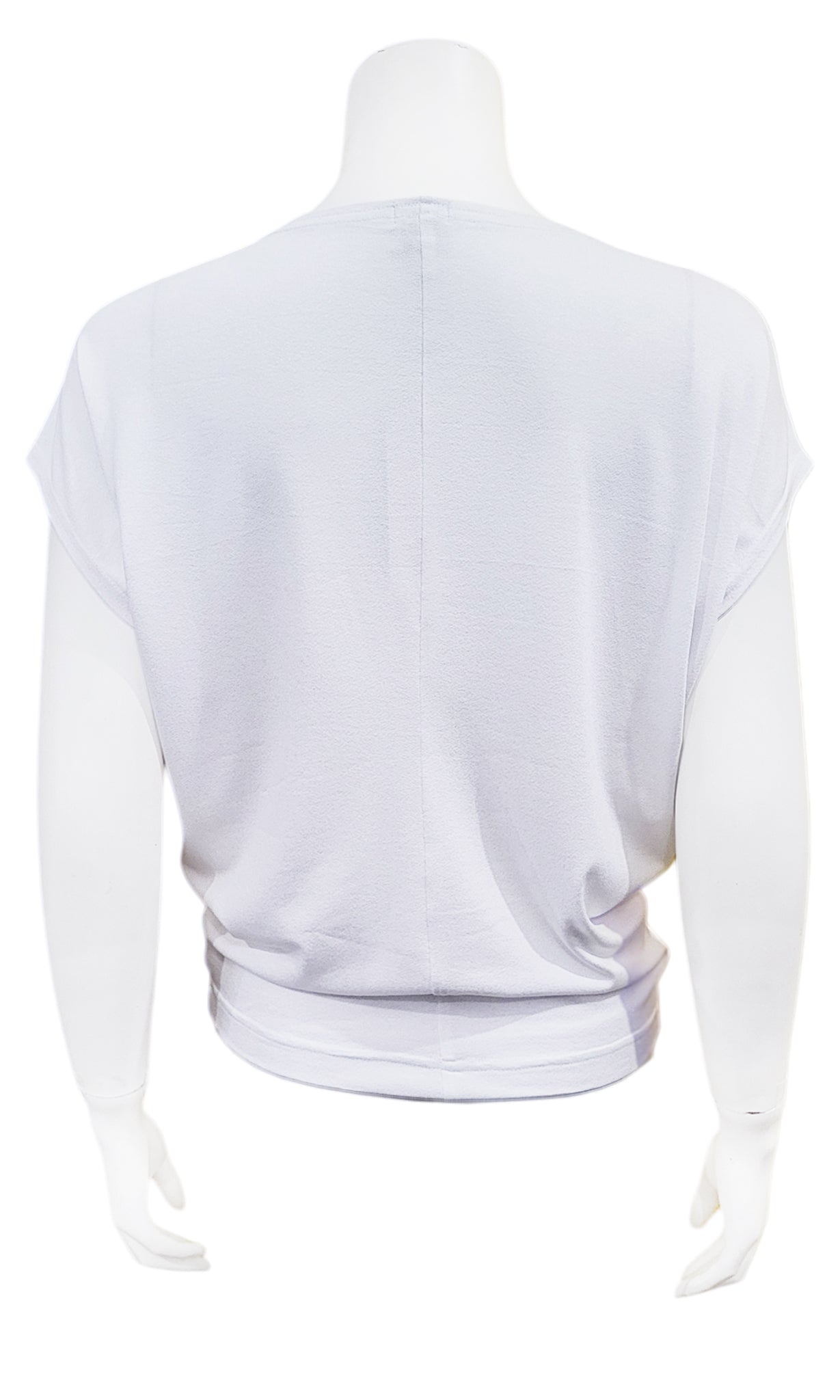 - Details: Wide scoop neckline, blousy through bust and waist, fitted at high hip.