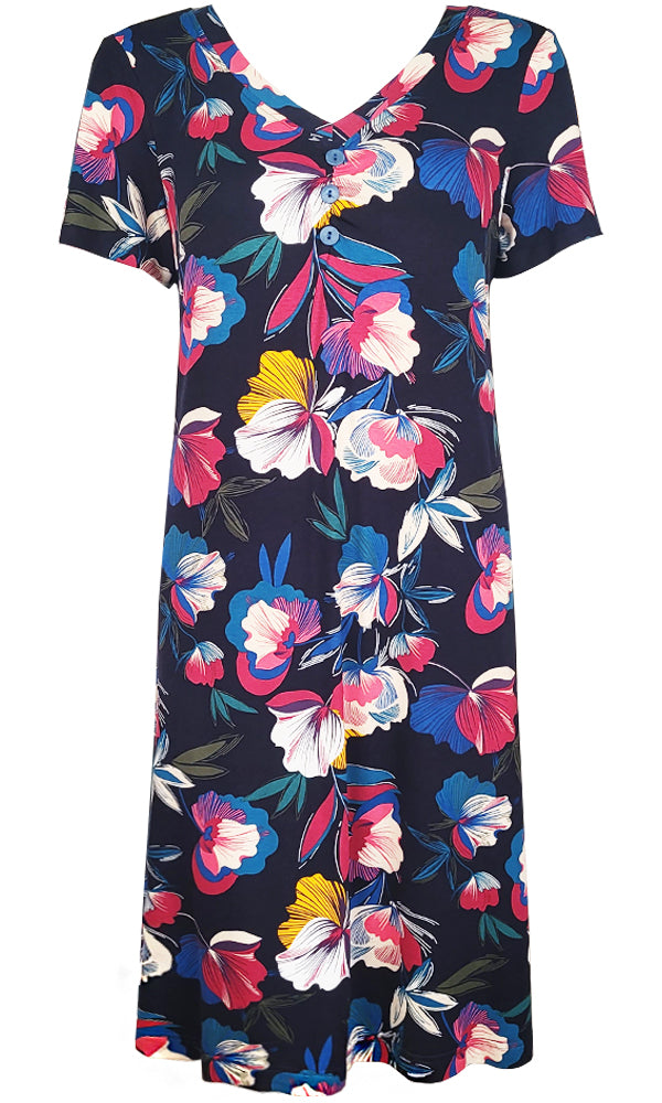 DELPHINE is a breezy way to introduce a little spring into your wardrobe with fun retro prints and a buttery soft (and breathable) viscose knit that feels soo luxurious. With her 'just deep enough' V-neck and cute bust gathers (topped off by Mandala's signature 3 button detail), she'll have you floating through the season!
