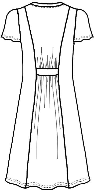 - Details: A-line short sleeves / Back bustle waist shaping / Hip pockets!