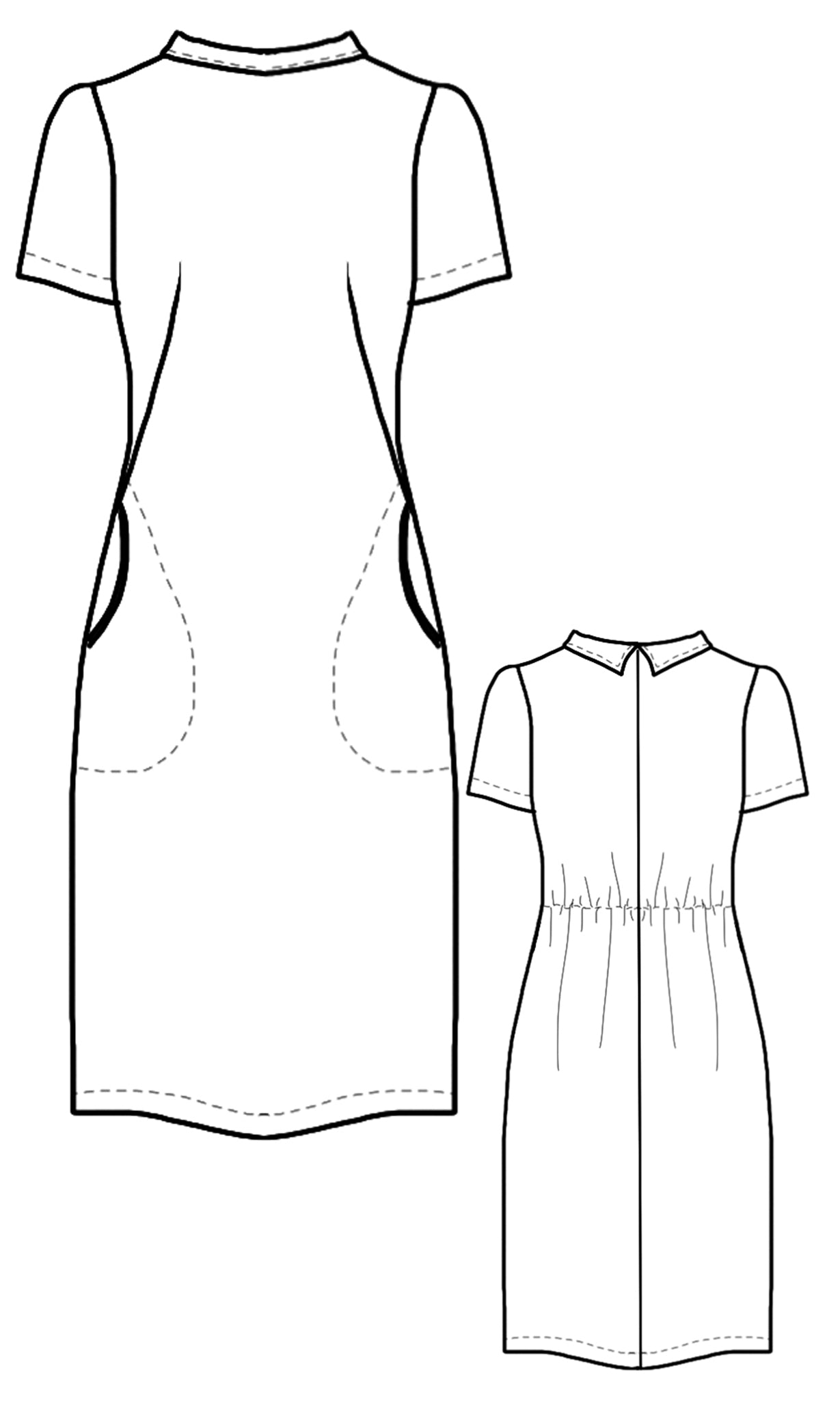 - Details: french darts with pockets / back waist elastic / wide roll collar / fully lined / can be worn with or without the separate dress clip.